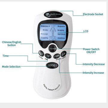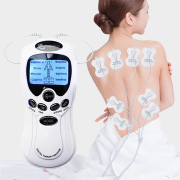 Estimula los músculos y bloquea los receptores de dolor mediante suaves corrientes eléctricas, ayudando a aliviar la tensión muscular y mejorar la circulación sanguínea.