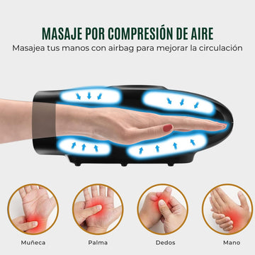 - El dispositivo utiliza acupresión y compresión de aire para estimular los puntos de presión en las manos, lo que ayuda a aliviar la rigidez y el dolor muscular. También mejora la circulación y reduce el entumecimiento.